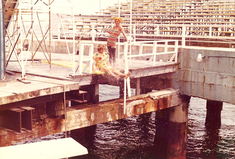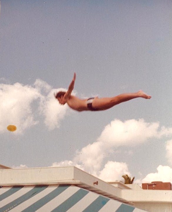 swan dive from a 30 ft tower, Miami Beach, Florida,