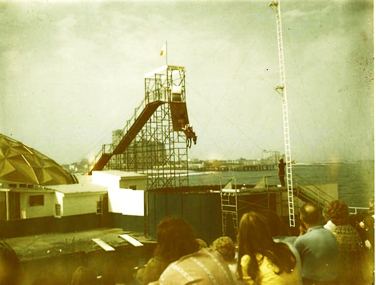 1970; Diving Horse Gamal, rider Patti Dolan. |